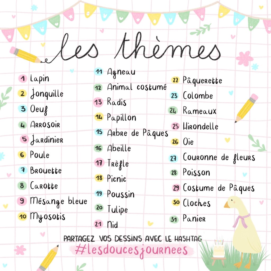 Objectif : dessiner chaque jour sur des thèmes autour de Pâques et du printemps.