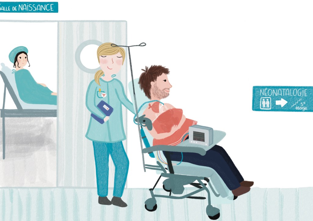 Illustration du fauteuil de transfert et de l’univers de la néonatalogie.