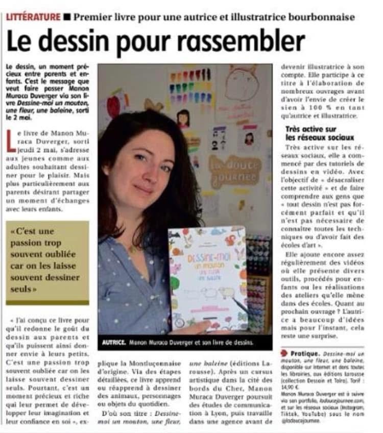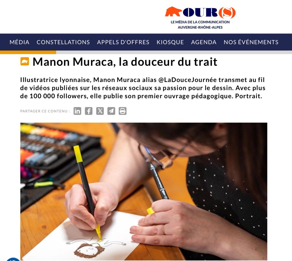 « Manon Muraca – La douce journée est une illustratrice. Elle propose sur ses réseaux des tutos pour partager avec le plus grand nombre son amour du dessin. Son souhait ? Redonner le goût de dessiner aux parents et aux enfants pour revaloriser cette activité parfaite et stimuler imagination et créativité à tous les âges.